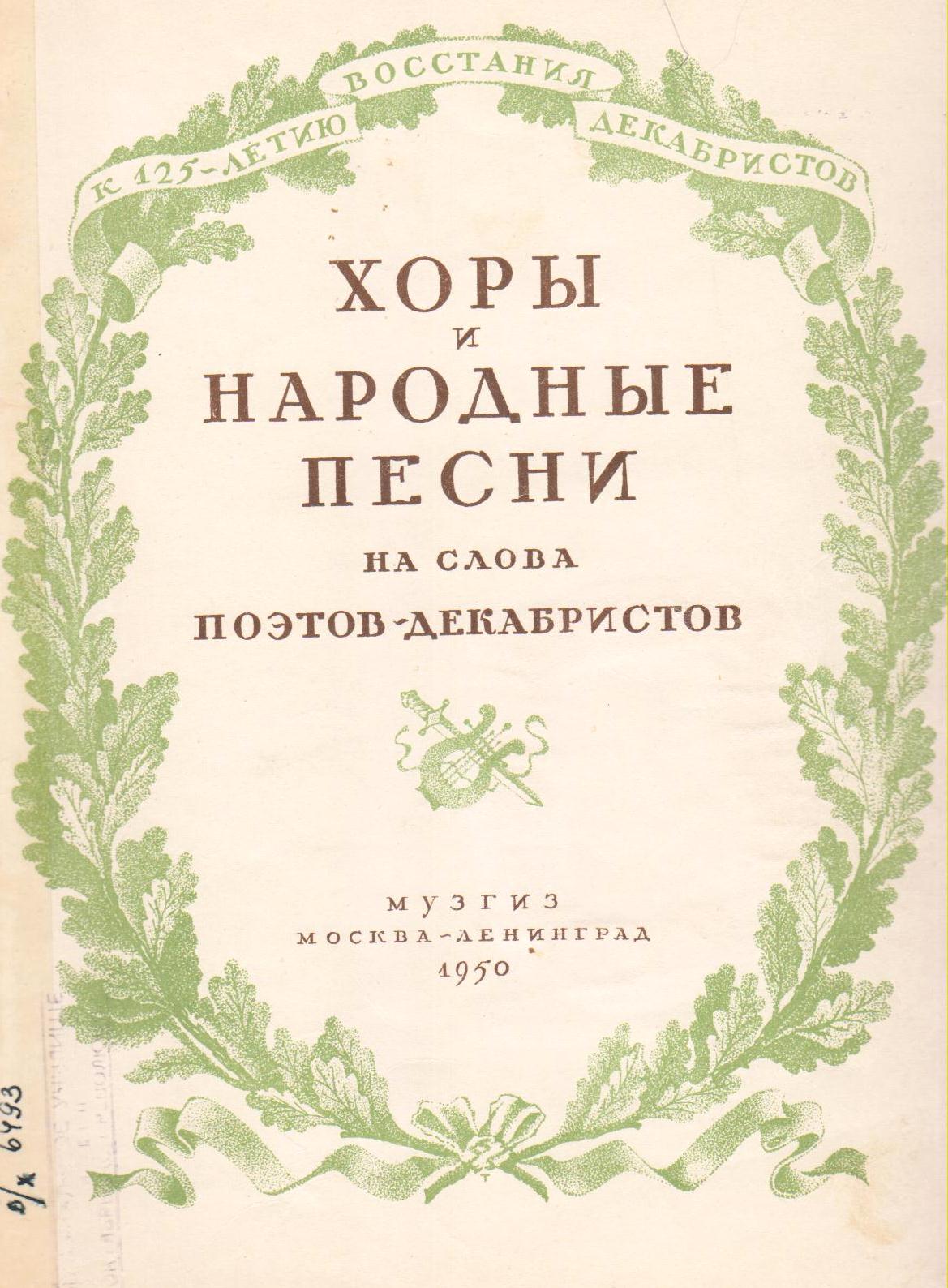 Не слышно шума городского [Ноты ] : Народная песня / Обработка Д. Васильев-Буглай ; Слова Ф. Глинка // Хоры и народные песни на слова поэтов-декабристов : К 125-летию восстания декабристов / Редакция Б. Страннолюбский. - Москва-Ленинград : Музгиз, 1950. - С. 51.