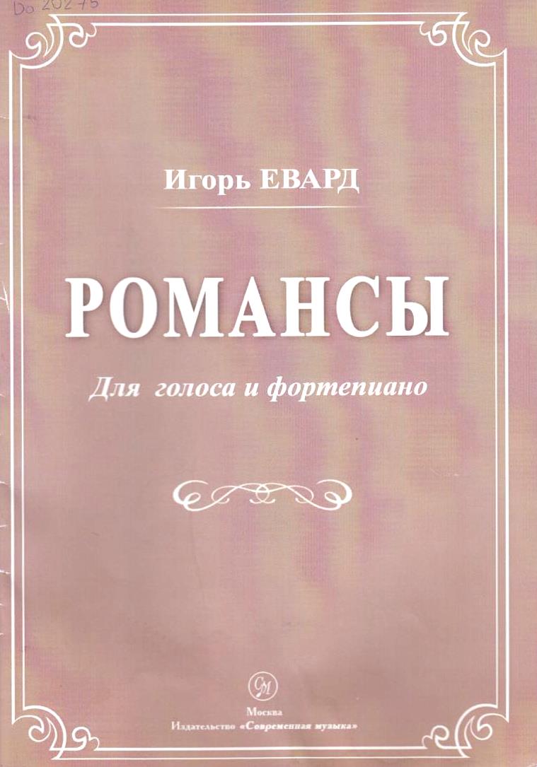Есть в близости черта / И. Евард ; Слова А. Ахматова // Романсы : для голоса и фортепиано / И. Евард ; Главный редактор Ф.И. Такун. – Москва : Современная музыка, 2018. – С. 50.